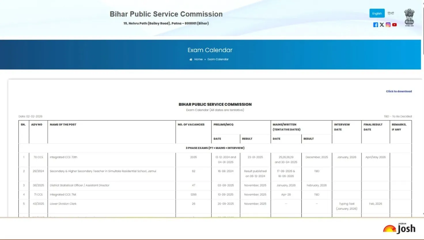 - BPSC released the 2026 exam calendar on February 2, 2026.
