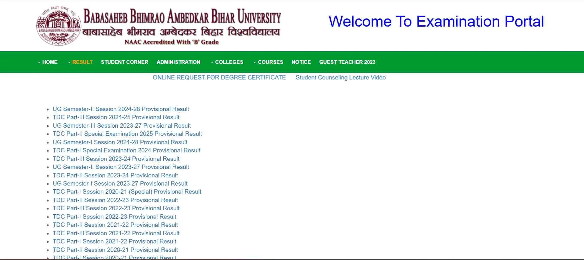 BRABU Result 2026: विभिन्न कोर्स के परिणाम लिंक