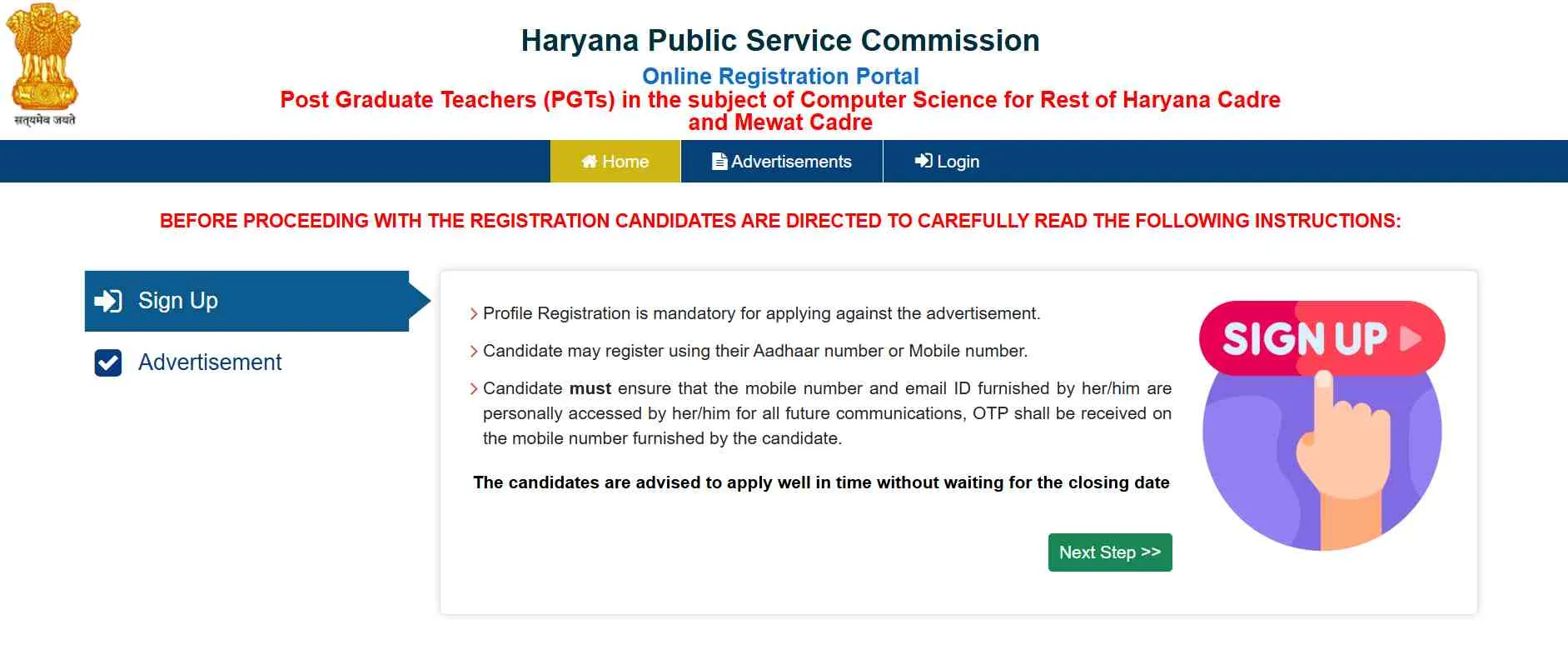 वन टाइम पर रजिस्ट्रेशन की प्रक्रिया को पूरा करें। (यदि नहीं किया हो तो)