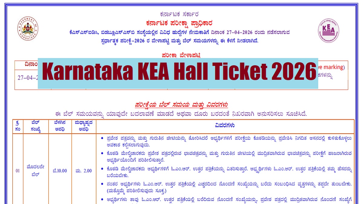 Karnataka KEA Hall Ticket 2026: The Karnataka Examinations Authority (KEA) is all set to conduct the written exam for various posts in KSSIDC (Karnataka State Small Industries Development Corporation) and BWSSB (Bangalore Water Supply and Sewerage Board) on April 27, 2026. The Karnataka Examinations Authority (KEA) has released the Karnataka KEA Hall Ticket 2026 download link for various posts. Candidates appearing in the competitive exam for recruitment to various posts in KSSIDC and BWSSB, are advised to check and follow the specific bell schedule for the morning and afternoon sessions.