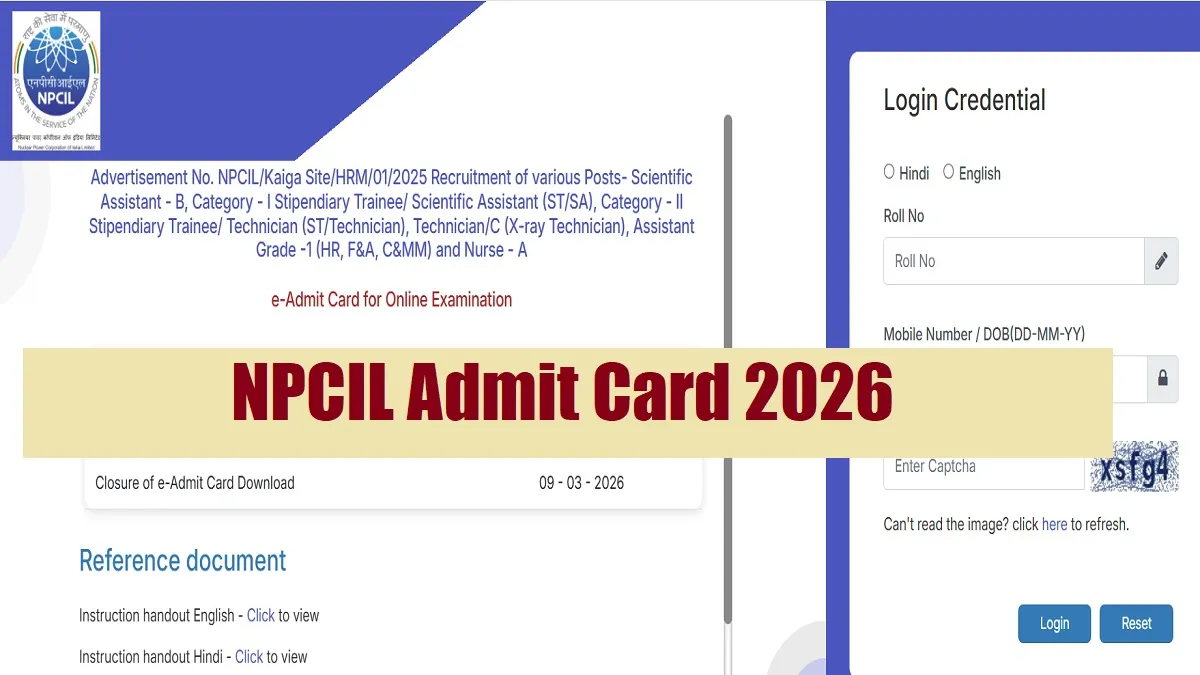 NPCIL Admit Card 2026 Download link is available on  official website of Nuclear Power Corporation of India Limited (NPCIL)-https://npcilcareers.co.in. The written exam for various posts is scheduled from March 02 to March 16, 2026. Check the download link and other details here.