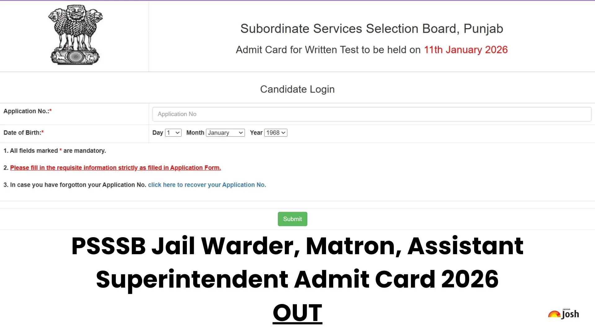 PSSSB Jail Warder Admit Card 2026 Download Link