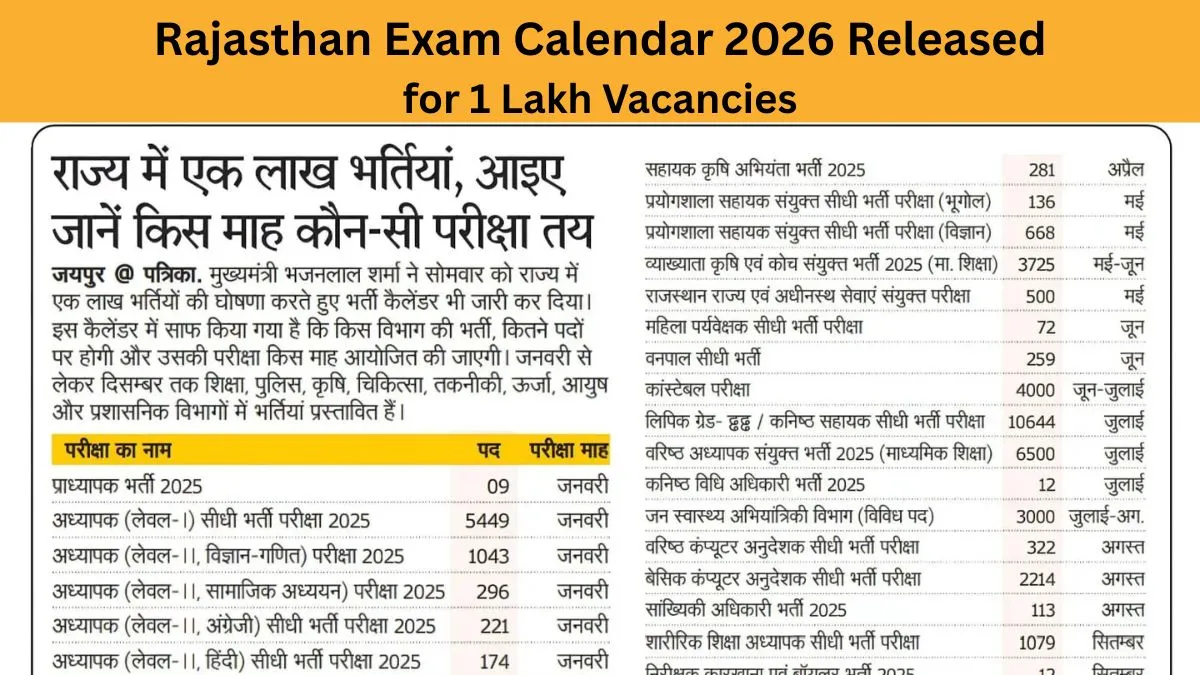 Rajasthan Exam Calendar 2026: Vacancies & Exam Month