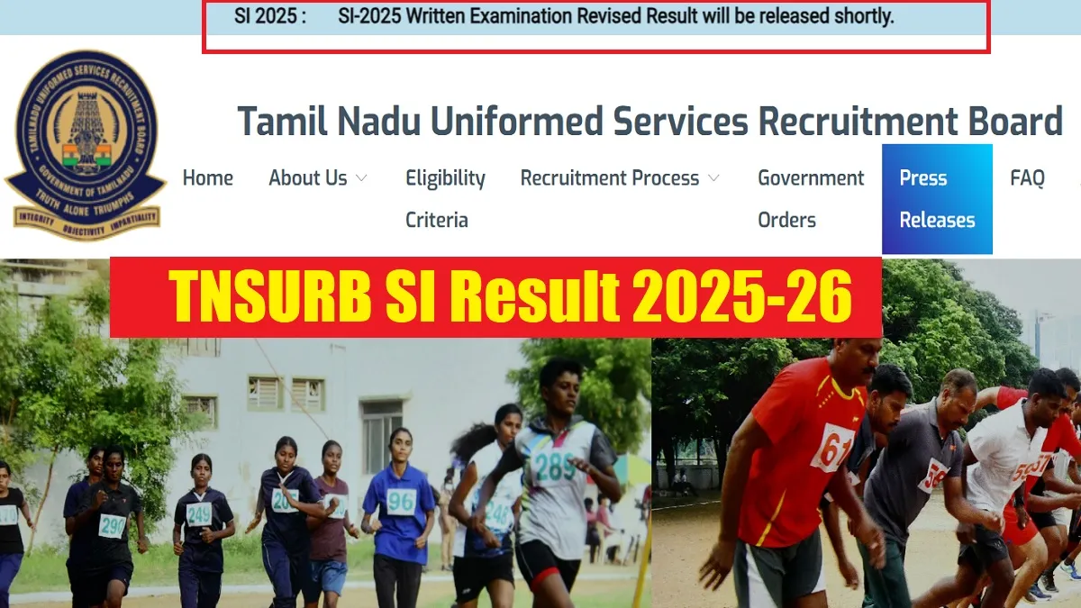 TNSURB SI Result 2025-26: The Tamil Nadu Uniformed Services Recruitment Board (TNURSB) is all set to declare the result for the posts of Sub-Inspectors of Police (Taluka and Armed Force). The Board has displayed short notice regarding the revised result for the Sub-Inspectors of Police result. All those candidates who are part of the selection process for the 1299 posts of Sub-Inspectors of Police (Taluka and Armed Force) can download the result pdf through the official website-https://tnusrb.tn.gov.in.