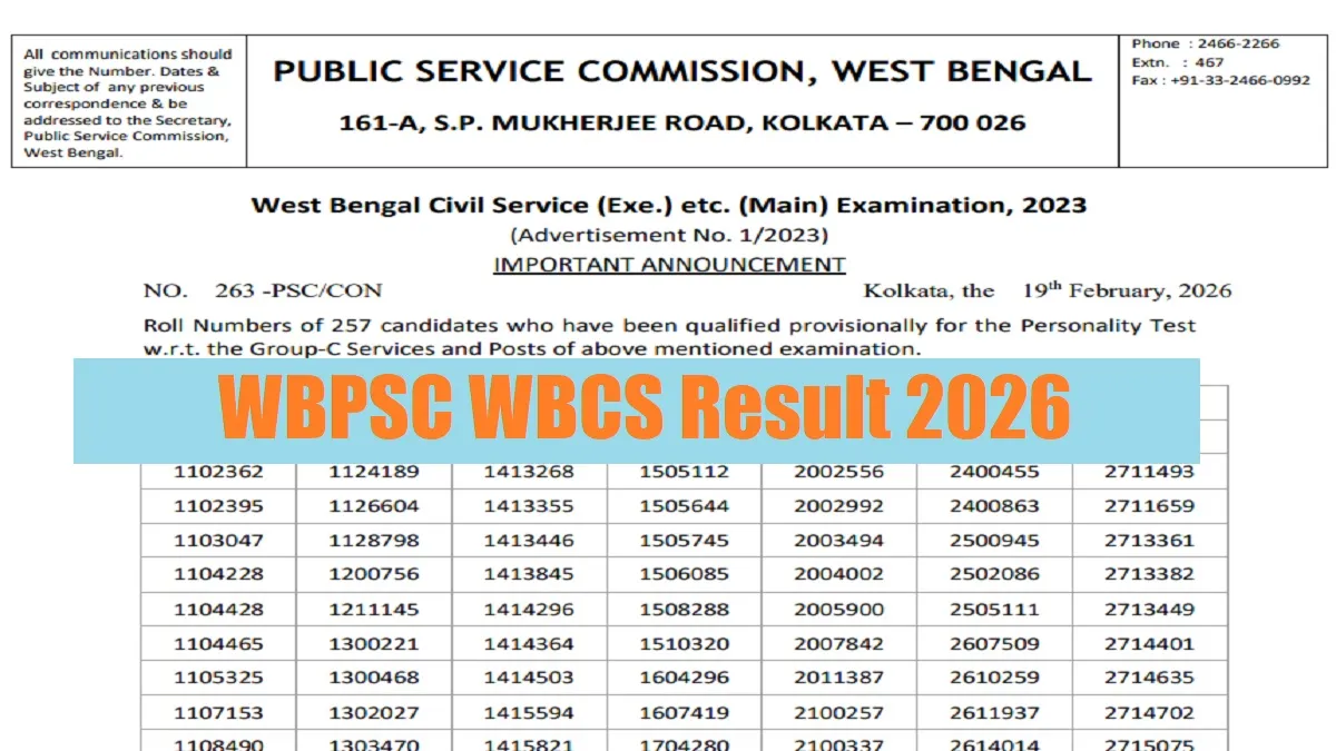 WBPSC Result 2026 Download: West Bengal Public Service Commission (WBPSC) has published the West Bengal Civil Service (Exe.) etc. (Main) Examination on its website. All candidates who appeared in the exam against Advertisement No. 1/2023 can download WBPSC Civil Service Result from the official website - wbpsc.gov.in or pscwbapplication.in. All the candidates shortlisted in mains exam are able to appear for the personality test round.