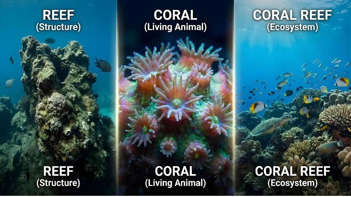 In this article, we are going to learn about each term, how they are connected, their differences, and why coral reefs are so important for both nature and human communities.