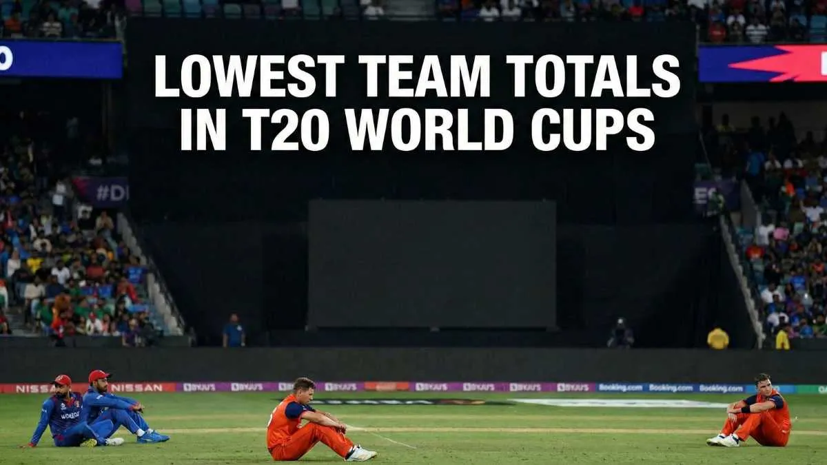 Here is a list of the Top 10 lowest team totals in T20 World Cups. Netherlands leads the list with 39 runs, check the other lowest totals in T20 World Cup history below.
