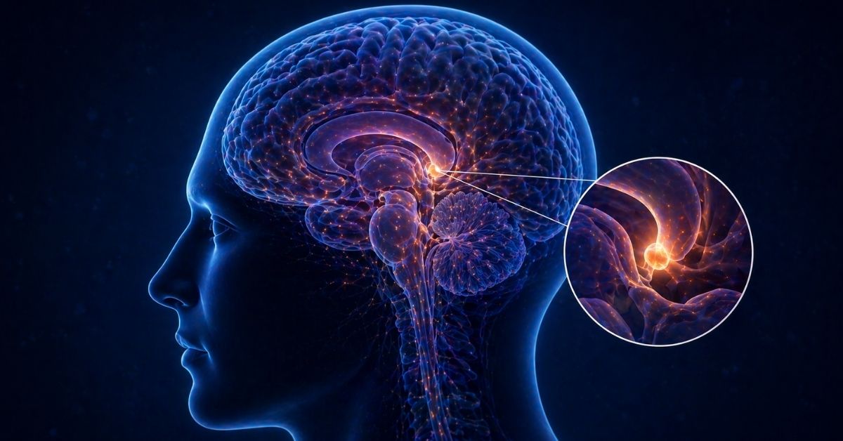 The Cleveland Clinic mentions: “Your pineal gland, also called the pineal body or epiphysis cerebri, is a tiny gland in your brain that’s located beneath the back part of the corpus callosum. It’s a part of your endocrine system and secretes the hormone melatonin. Your pineal gland’s main job is to help control the circadian cycle of sleep and wakefulness by secreting melatonin.”