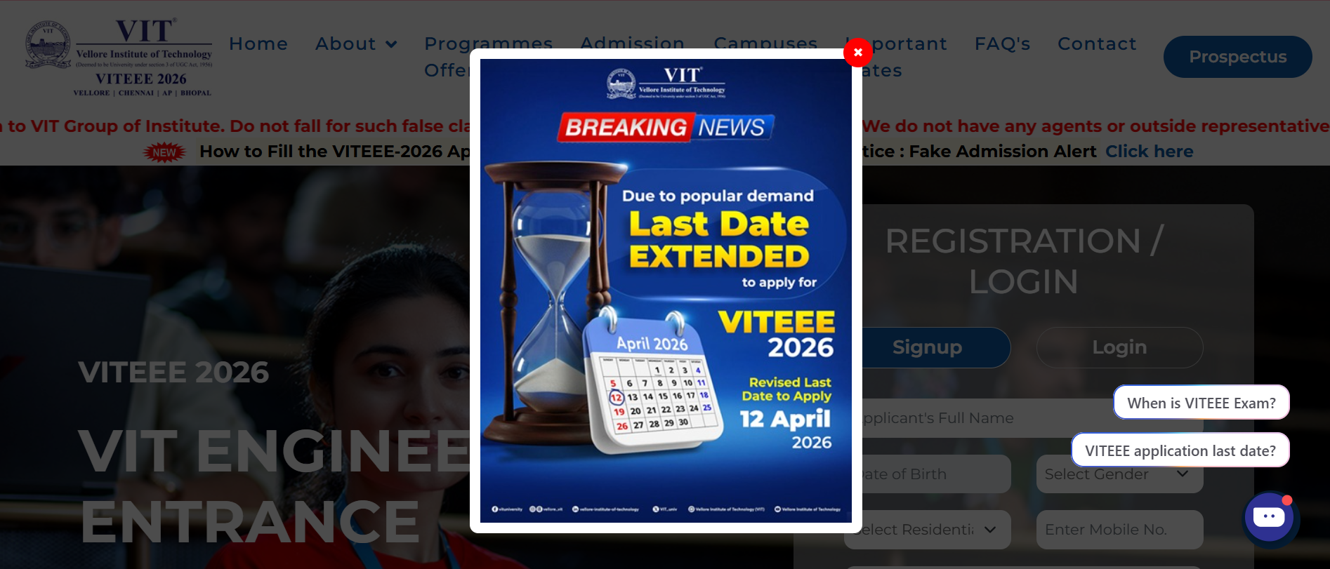 VITEEE 2026 application deadline has been extended again to April 12, 2026.
